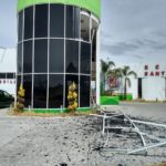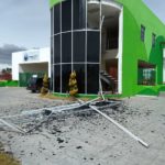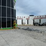 En reporte ciudadano acusan que el lugar del recinto ferial se encuentra acordonado debido al desprendimiento de la estructura y vidrios de la entrada principal.