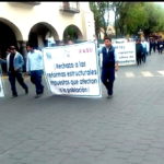 El contingente se manifestó frente a palacio de gobierno por espacio de aproximadamente 45 minutos, para retirarse tras haber cumplido en Tlaxcala con el programa de esta jornada sindical.