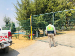 Brigadas de la Coordinación Estatal de Protección Civil (CEPC) verifican que balnearios y centros recreativos en la entidad permanezcan cerrados como medida preventiva para disminuir el riesgo de contagio por Covid-19 entre la población.