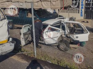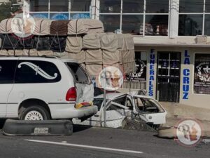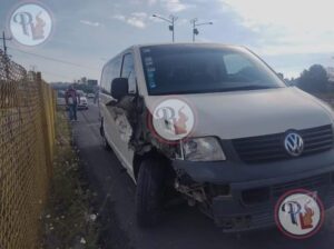 Fue esta mañana, que el vehículo Pointer de color blanco, con metálicas del Estado de México, chocó contra una camioneta tipo Eurovan y una carroza fúnebre que transitaban por la zona.