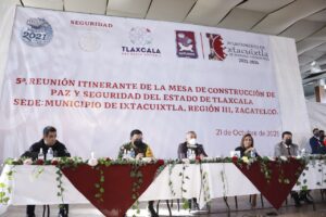 La gobernadora Lorena Cuéllar Cisneros dirigió la quinta reunión itinerante de la mesa de la Construcción de Paz y Seguridad del Estado de Tlaxcala, con sede en el municipio de Ixtacuixtla, región III, Zacatelco, donde refrendó su compromiso de trabajo conjunto a fin de lograr resultados rápidos y tangibles.