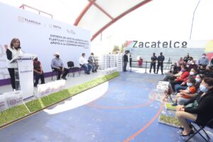 En el Polideportivo de Zacatelco, la mandataria estatal refrendó el compromiso de trabajar todos los días por las y los tlaxcaltecas, a fin de que les lleguen los apoyos, “hemos entregado ya fertilizante y todavía continuamos en este trabajo, decirles que vamos muy bien también en la vacuna, estamos en segundo lugar a nivel nacional en vacunación”.
