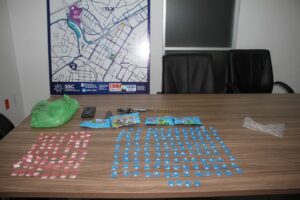 Tras la revisión le fueron asegurados un automóvil Sedan con placas 577YBU del Distrito Federal, así como 74 envoltorios de la droga conocida como piedra, 134 envoltorios del estupefaciente cristal, cuatro envoltorios de marihuana, un arma de fuego tipo escuadra marca Llama, un cargador y siete cartuchos útiles calibre 9 milímetros.