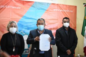 Chávez de la Rosa presentó el documento de la Toma de Nota recibida del secretario general del SNTE, Alfonso Cepeda Salas, el pasado 5 de diciembre en la Ciudad de México, por lo que gracias a este proceso democrático respaldarán los derechos y prestaciones laborales de sus agremiados.