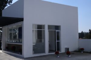 Antes del corte del listón inaugural, Lorena Cuéllar Cisneros recorrió el módulo que consta de oficina de atención, sistema de control de seguridad y un cubículo de la persona responsable del área.