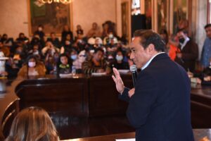 Acompañado por colaboradores del Ayuntamiento, el presidente Corichi reiteró su compromiso dehacer de Tlaxcala una ciudad eminentemente turística que permita potenciar la imagen de la Ciudad, así como la generación de economía y empleo en la capital, a través de sus artesanías.