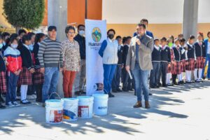 Con el objetivo de mejorar la infraestructura educativa de la Escuela Primaria “Venustiano Carranza” del Pueblo de Hermenegildo Galeana, el presidente municipal Salvador Santos Cedillo, entregó este día botes de pintura en beneficio de la comunidad escolar.