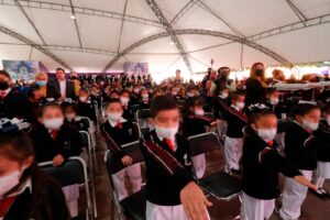 Posteriormente, se efectuó la toma de protesta de 327 pequeñas y pequeños de diferentes escuelas primarias; así como el abanderamiento de alumnas y alumnos de educación básica y media superior de las instituciones “Educación y Patria”; “Manuel Lardizábal”; “Luis G. Salamanca”; “Prof. Calendario Nava Jiménez”; “Emiliano Zapata”; Secundaria Técnica número 4 de Chiautempan y del Colegio de Estudios Científicos y Tecnológicos del Estado (Cecyte) plantel 08, quienes juraron bandera, bajo la dirección de la estudiante Frida Itzel Olguín Salazar.