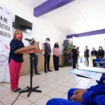 En la Telesecundaria “Alonso Escalona”, la mandataria tlaxcalteca entregó un aula didáctica en beneficio de 89 estudiantes y destacó la importancia de que los alumnos, al igual que sus docentes, cuenten con áreas adecuadas para el proceso de enseñanza–aprendizaje.