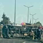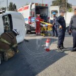 Deja dos lesionados choque con volcadura en la federal Tlaxcala-Puebla, a la altura de Papalotla