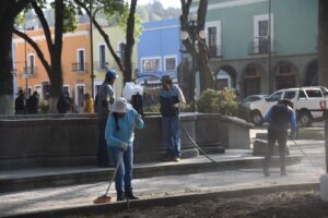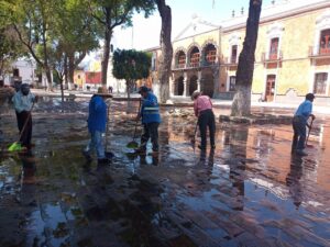 Continúa Ayuntamiento de Tlaxcala con labores de limpieza en primer cuadro de la Ciudad