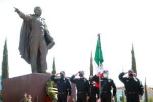 Como parte de este evento cívico, el secretario de Educación, acompañado de funcionarios de los tres poderes de gobierno, colocó una ofrenda floral y montó guardia de honor, al momento que se escuchaba el toque militar Tres de Diana.