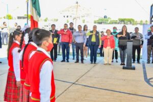 Al encabezar la ceremonia cívica de honores a la bandera en el Pueblo de José María Morelos, la presidenta Honorífica del Sistema Municipal para el Desarrollo Integral de la Familia (DIF) Huamantla, Karla Guadalupe Menéndez Cedillo, destacó la importancia del trabajo en equipo para alcanzar mejores resultados.