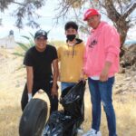Al concluir la conferencia, se trasladaron al lugar de la actividad de limpieza, donde alumnos, docentes y personal del ayuntamiento realizaron el recorrido por las áreas definidas, donde recolectaron diversos tipos de desechos, como PET, papeles, llantas y prendas de vestir, entre otros.