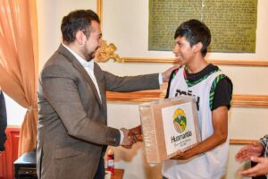 Acompañado de sus familiares, el joven Jesús Armas, recibió también una computadora personal por parte del edil Salvador Santos, quien le mencionó es en recompensa al esfuerzo y mérito deportivo que pone en alto el nombre de Huamantla.