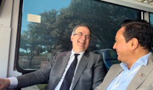 El productivo intercambio de ideas, uno a uno, se dio durante el trayecto de casi una hora de la Ciudad de Dallas a la localidad de Cleburne, en Texas, recorrido que hizo el Convoy para la Internacionalización de Municipios Mexicanos al cual el tlaxcalteca fue invitado por la Secretaría de Relaciones Exteriores.