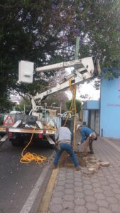 Trabajadores de la Dirección de Servicios Municipales de Tlaxcala Capital atendieron con oportunidad el reporte de un poste dañado, ubicado en la calle Mariano Sánchez de la Colonia Centro.