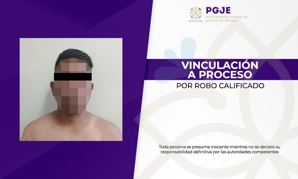 El agente del Ministerio Público del fuero común de la Procuraduría General de Justicia del Estado (PGJE) obtuvo de un Juez de Control la vinculación a proceso de una persona del sexo masculino por el delito de robo calificado.