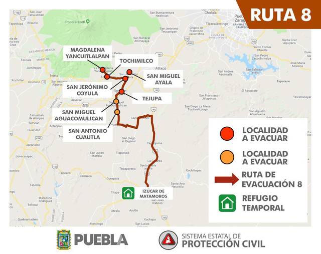 De acuerdo con información de la Coordinación Nacional de Protección Civil (CNPC) y de Protección civil de Puebla, estas son las rutas de evacuación del volcán Popocatépetl: