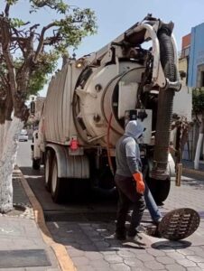 Con ayuda de un camión Vactor, personal del área de alcantarillado ha efectuado trabajos de limpia en pozos de visita en calles y avenidas como Hidalgo, Juárez, Josefa Castelar, Mariano Sánchez, Justo Sierra y Julián Carrillo, así como en Guridi y Alcocer.