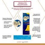 Entre los elementos que permiten detectar el producto falsificado destaca que el símbolo de marca registrada en el anverso de la caja se encuentra muy cercano a la línea del doblez, mientras que en el reverso no cuenta con leyendas de fabricante y distribuidor. Asimismo, el empaque secundario presenta la leyenda “Tabletas”, pero no indica la cantidad de éstas que contiene.