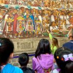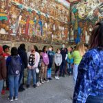 En este marco se realizó una visita guiada a alumnas y alumnos de la Escuela Primaria “Mariano Matamoros” donde apreciaron los Murales realizados por el Maestro Desiderio Hernández Xochitiotzin (qepd). En su obra narra la historia de Tlaxcala presentándola como la cuna de la nación y el mestizaje.