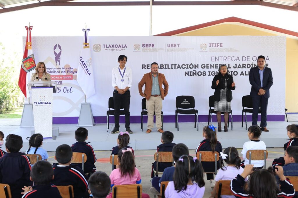 La gobernadora Lorena Cuéllar Cisneros entregó la obra de rehabilitación general del jardín de niños «Ignacio Allende» de la comunidad de Santa María Acuitlapilco, municipio de Tlaxcala, la cual tuvo una inversión de un millón 659 mil 854.93 pesos.