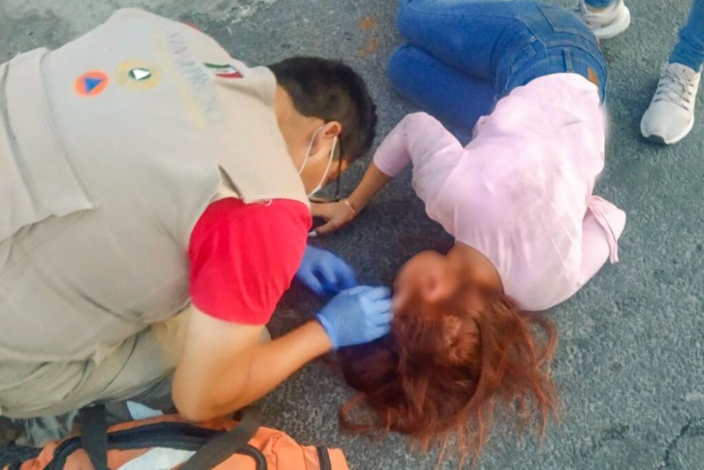 Personal de la Coordinación de Protección Civil municipal, valoraron a la joven que se encontraba sobre la cinta asfáltica, ya acompañada por su progenitora, donde dictaminaron posible fractura de clavícula derecha, por lo que era necesario trasladarla a un hospital