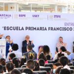 La titular del Ejecutivo local, Lorena Cuéllar Cisneros, entregó equipamiento e infraestructura educativa en la escuela primaria estatal Francisco I. Madero del barrio de Santiago, en el municipio de San Pablo del Monte, con una inversión superior a 2.4 millones de pesos en beneficio de 539 alumnos y alumnas.