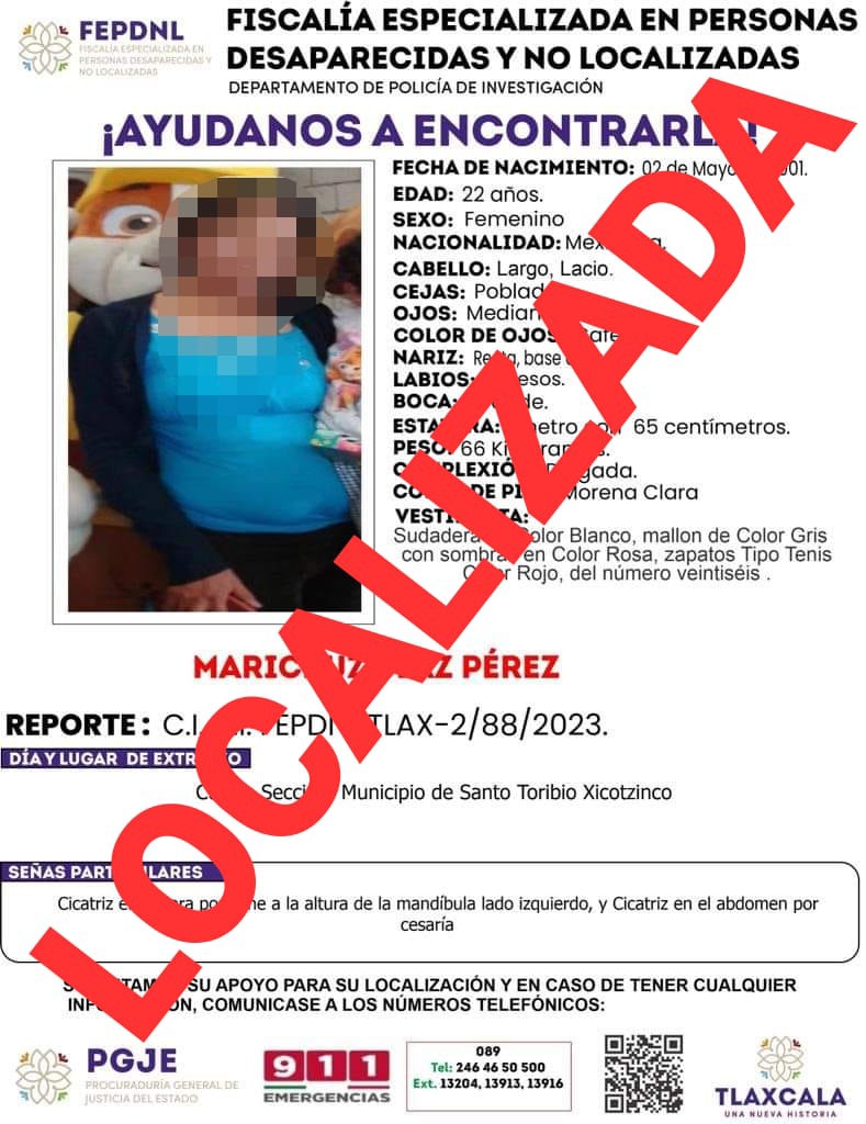 Elementos de la Policía de Investigación adscritos a la Fiscalía Especializada en Personas Desaparecidas y No Localizadas (Fepdnl) de la Procuraduría General de Justicia del Estado (PGJE), localizaron a una persona del sexo femenino reportada como desaparecida.