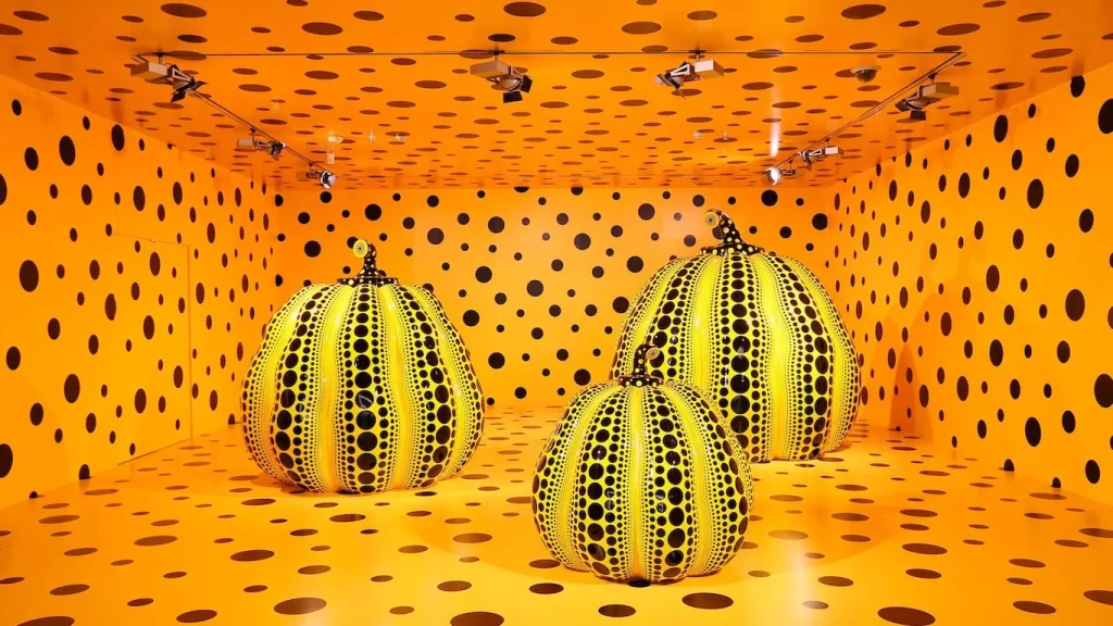 Yayoi Kusama es recluida voluntariamente en un psiquiátrico desde la década de 1970 por sufrir un trastorno obsesivo compulsivo (TOC), alucinaciones y depresiones severas, las enfermedades mentales de Yayoi Kusama se reflejan en su trabajo donde son comunes la repetición de patrones y la psicodelia, y en donde los puntos y círculos ‘polka dots’ de todos los tamaños y colores tienen una particular relevancia.