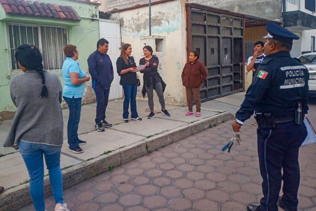 Por otro lado, se realizó una plática informativa del programa «Vecinos Vigilantes», con el objetivo de que conozcan medidas preventivas que ayuden a evitar incidentes e incrementar la comunicación y el acercamiento entre los vecinos y la policía municipal.