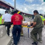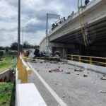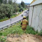 Al sitio acudieron elementos de la Guardia Nacional y Bomberos de la SSC, quienes efectuaron acordonamiento y trabajos para tapar combustible y quitar tubulares del puente.