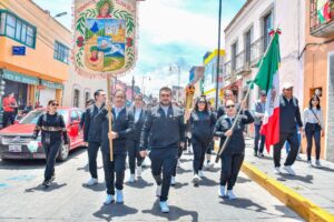 En el domo blanco del Centro Expositor, el alcalde Santos Cedillo, acompañado por integrantes del H. Ayuntamiento, coordinadores de área y presidentes de comunidad, trasladaron el fuego simbólico hasta la explanada de la Presidencia Municipal de Huamantla para ser entregado por la tarde a las autoridades de las 39 comunidades que conforman el municipio.
