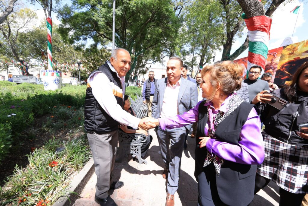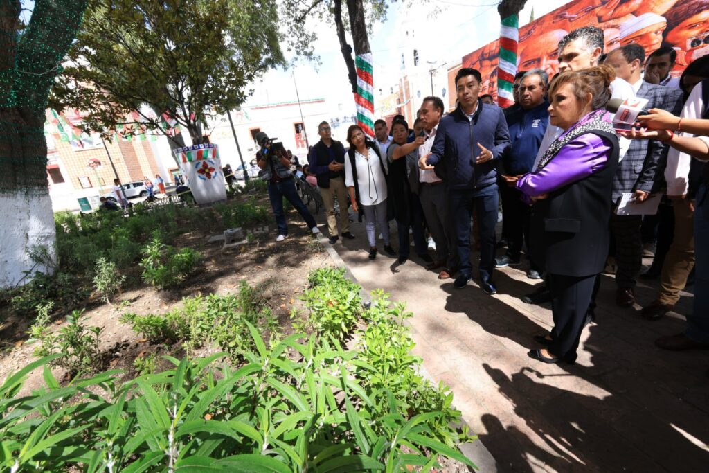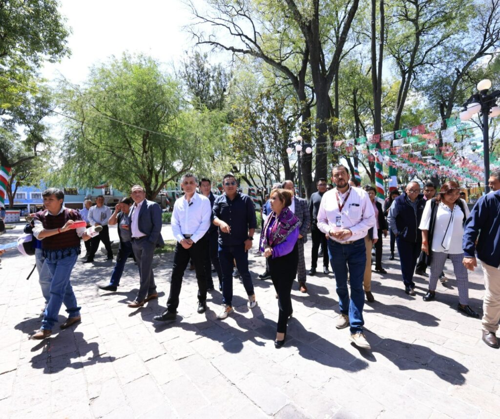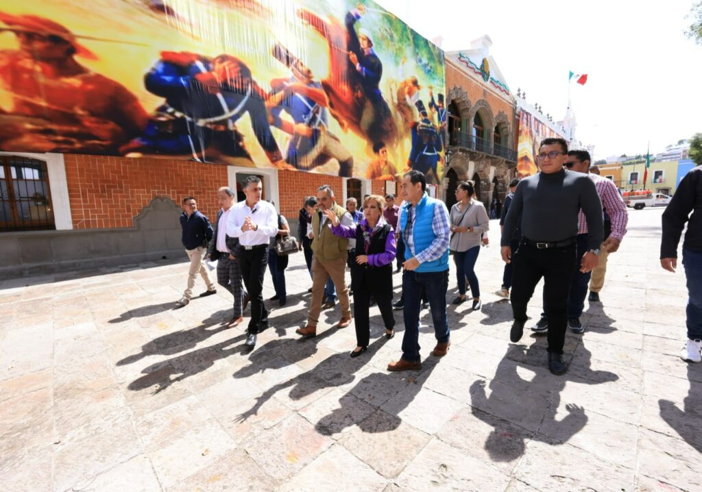 SUPERVISA GOBERNADORA TRABAJOS DE EMBELLECIMIENTO EN EL ZÓCALO DE TLAXCALA