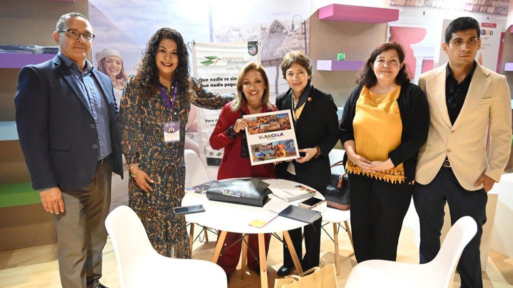 En el marco de la reunión, la titular del Ejecutivo local obsequió el libro «Tlaxcala Sí Existe», en tanto que la cónsul Audrey Rivera Gómez hizo lo propio con un libro de su autoría denominado: _“El Título 42 y el «Fenómeno Migratorio»._