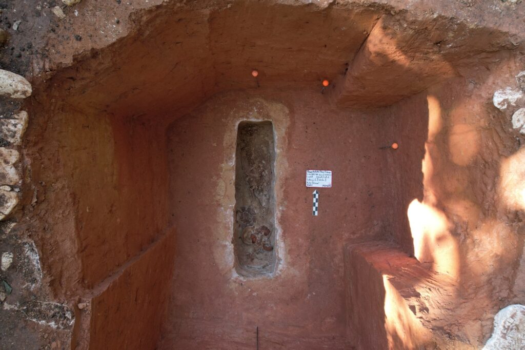 El espacio funerario fue construido con sillares de piedra, y fue sellado mediante lajas de piedra caliza.