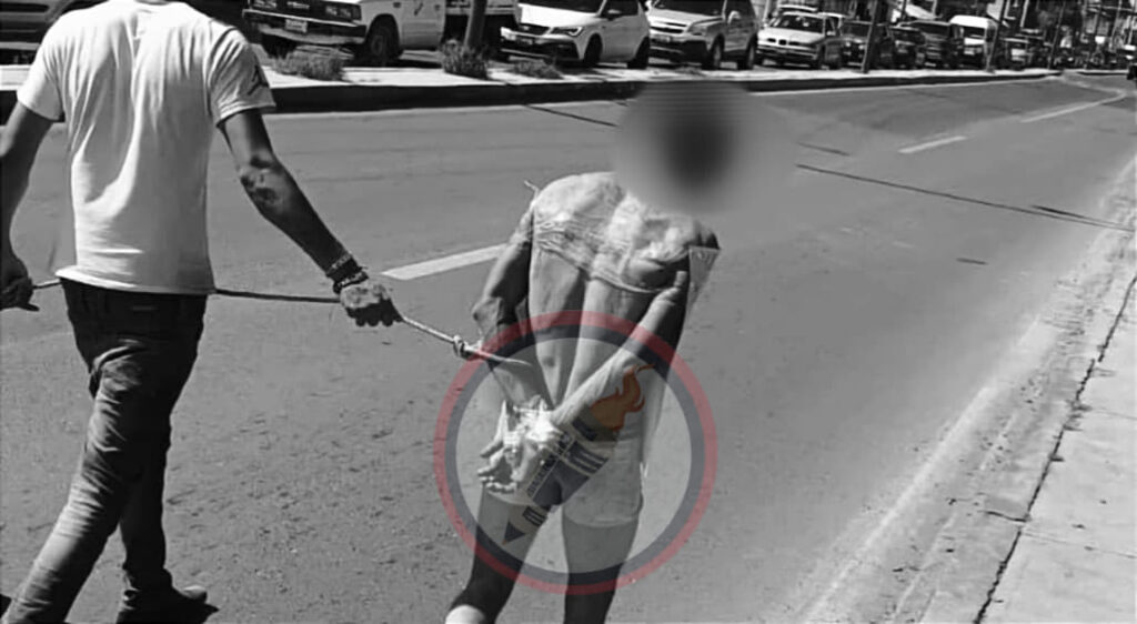 Por sospecha de robo sujeto es retenido, golpeado, desvestido, maniatado y paseado en vía pública