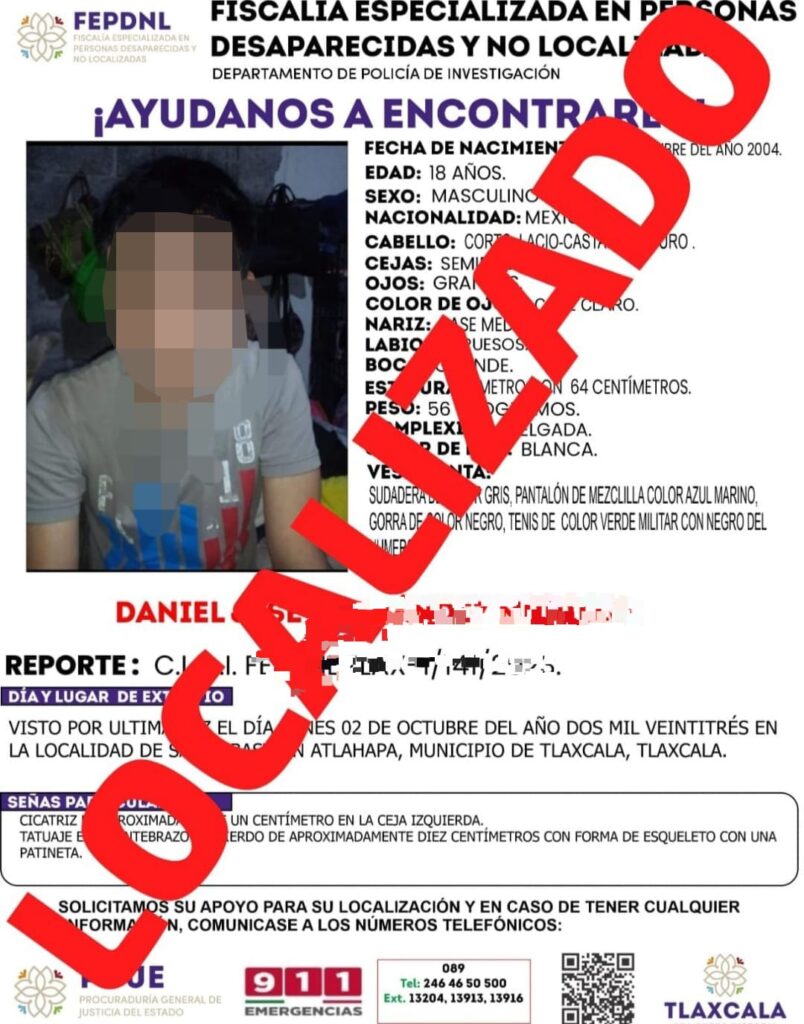 Elementos de la Policía de Investigación adscritos a la Fiscalía Especializada en Personas Desaparecidas y No Localizadas (Fepdnl) de la Procuraduría General de Justicia del Estado (PGJE) localizaron a un masculino reportado como desaparecido.