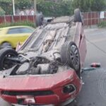 Esta mañana se registró la volcadura de un automóvil en la carretera Ocotlán-Chiautempan, a la altura de El Mirador y frente a un bar muy conocido, en la ciudad de Tlaxcala.