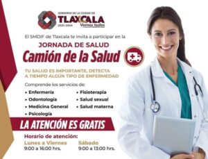Para mayores informes sobre fechas de los servicios del Camión de la Salud, los interesados pueden acudir a las oficinas del DIF municipal, en la colonia Loma Xicohténcatl o consultar la página de Facebook Tlaxcala Capital 2021–2024, donde de manera oportuna se darán a conocer las fechas en cada comunidad o delegación.