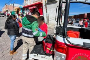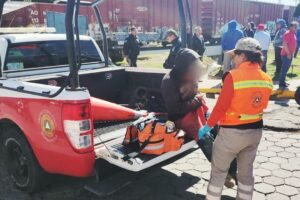 Elementos de la Dirección de Seguridad Pública, Tránsito y Protección Civil de Huamantla, brindaron apoyo de manera inmediata sobre el bulevar Cuamanco y calle Zaragoza a la altura de las vías del ferrocarril luego de ser informados sobre un percance vial donde se vieron involucrados una camioneta de materiales y el tren.