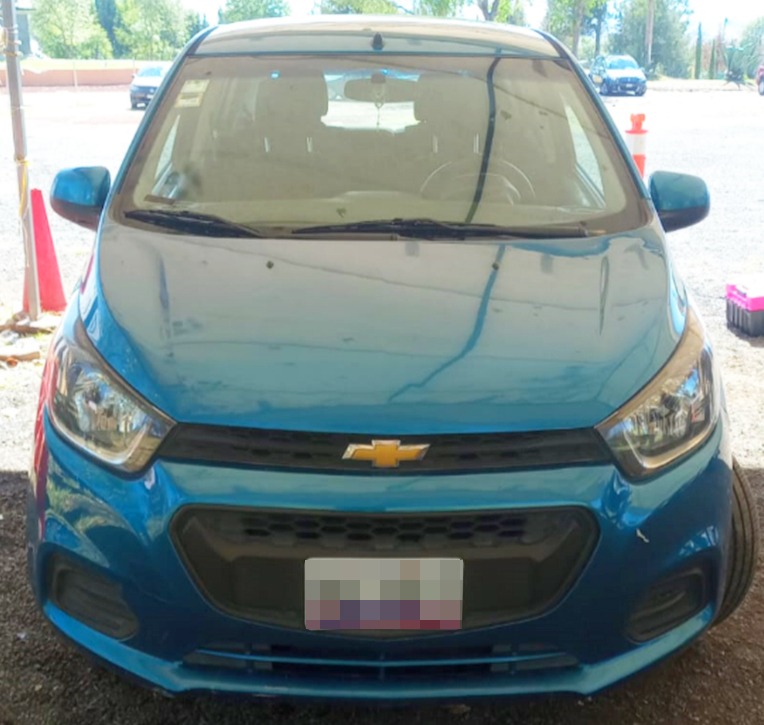 Agentes de la Policía de Investigación de la Procuraduría General de Justicia del Estado (PGJE) pusieron a disposición del Ministerio Público un vehículo marca Chevrolet, tipo Sedan, modelo 2019, color azul, que presentaba alteración en sus medios de identificación y contaba con reporte de robo en el estado de Puebla.