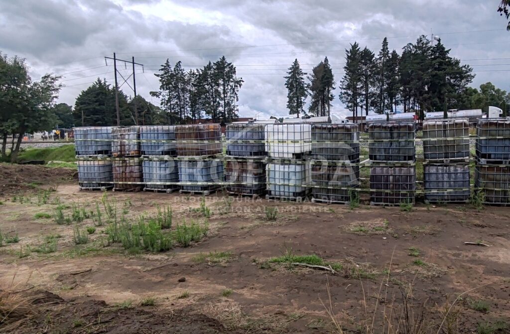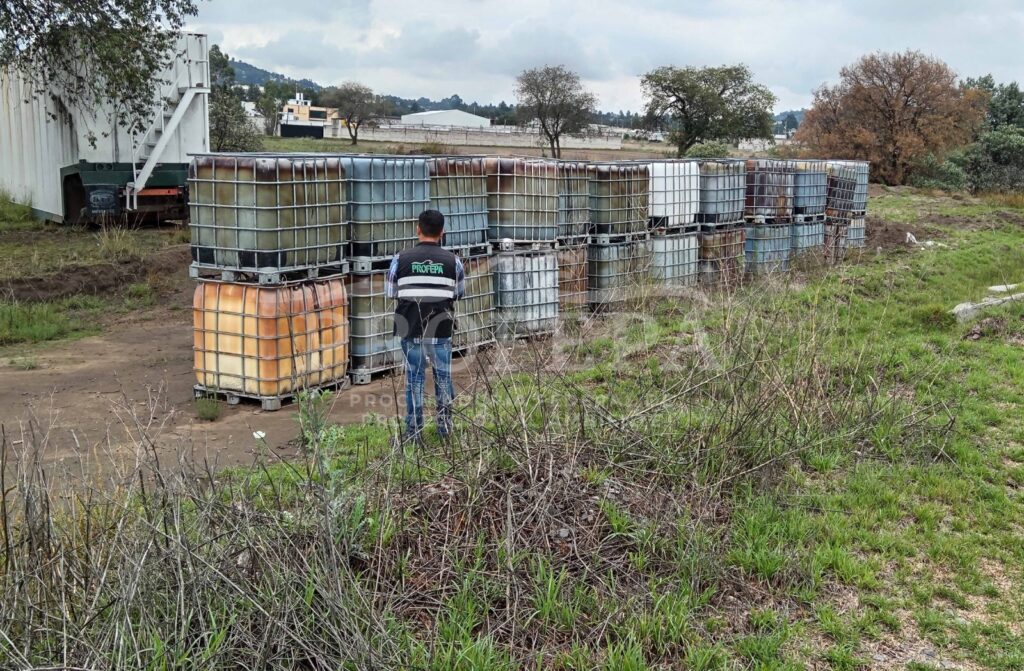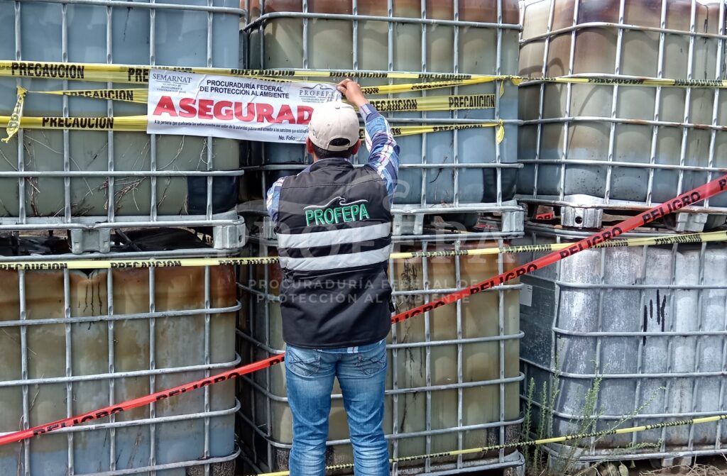 El predio forma parte del Corredor Industrial de Xaloztoc, y ahí la autoridad ambiental observó residuos industriales (líquidos con características inflamables y tóxicas), residuos líquidos aceitosos, así como productos sólidos color blanco, fuera de especificación. Todos estos líquidos están almacenados en 24 contenedores y una góndola metálica, y no muestran evidencia de que cuenten con autorización de la Semarnat.