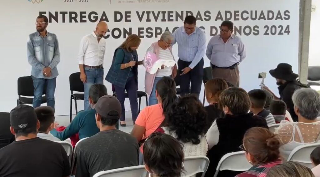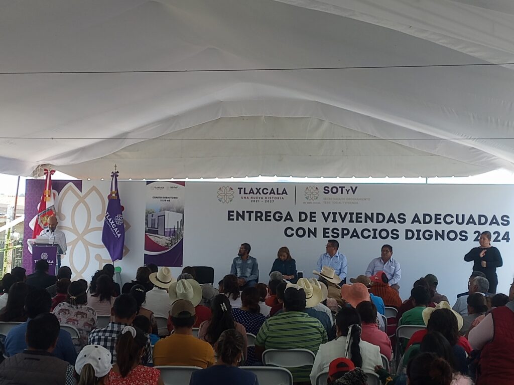 Esta tarde en Calpulalpan, Lorena Cuellar Cisneros, gobernadora de Tlaxcala, encabezó la entrega del programa de Viviendas Adecuadas con Espacios Dignos 2024. Este proyecto, que incluyó la entrega de 44 dormitorios y 2 casas habitaciones, tiene como objetivo mejorar las condiciones de vida de las familias tlaxcaltecas, asegurando viviendas de calidad certificada construidas en terrenos propios.