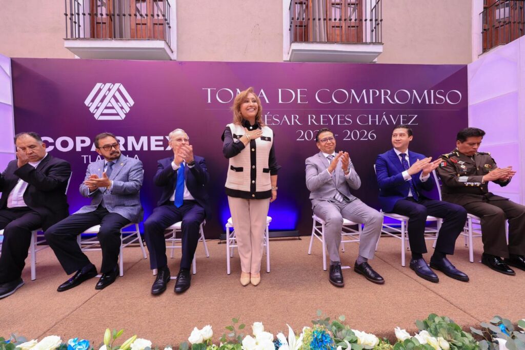 La gobernadora Lorena Cuéllar Cisneros asistió a la toma de compromiso 2024-2026 de la Confederación Patronal de la República Mexicana (Coparmex) en Tlaxcala, en la que se tomó protesta a los nuevos integrantes del Consejo Directivo, a quienes refrendó su compromiso de trabajar conjuntamente para fortalecer la competitividad, la inversión y la creación de empleos.