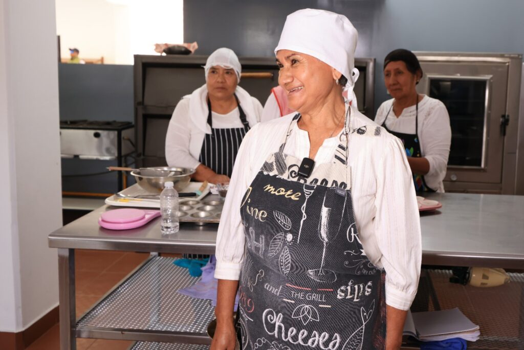 Con una sonrisa en el rostro, Esther comparte cómo su esposo e hijo la motivan a seguir practicando. Cada vez que enciende el horno, pide a Dios que todo salga bien. El resultado, lleno de felicidad, es compartido con quienes la rodean.