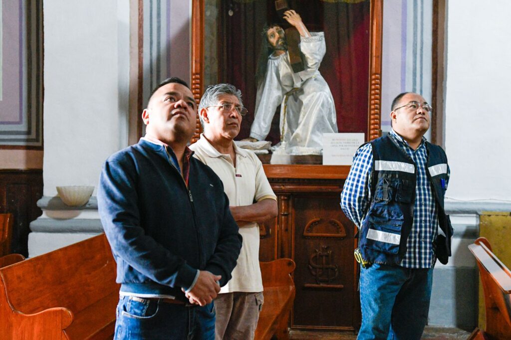Con esta acción que da gusto, el edil dispuso de la restauración de los aplanados del inmueble, con las técnicas de aplicación recomendadas por las autoridades y personal del INAH, para la conservación del templo, para lo cual se utilizó la mezcla natural de cal 100 por ciento pura –conocida como oxical- y baba de nopal, para los muros dañados por la humedad y eflorescencias salinas –comúnmente conocido como salitre-, oquedades, y disgregación.
