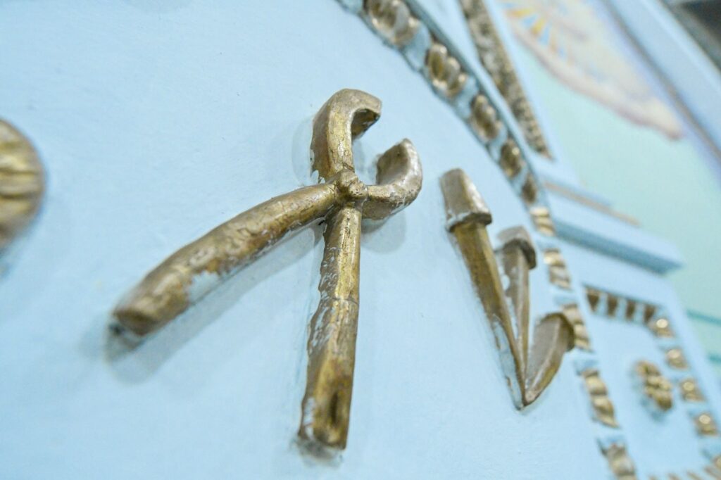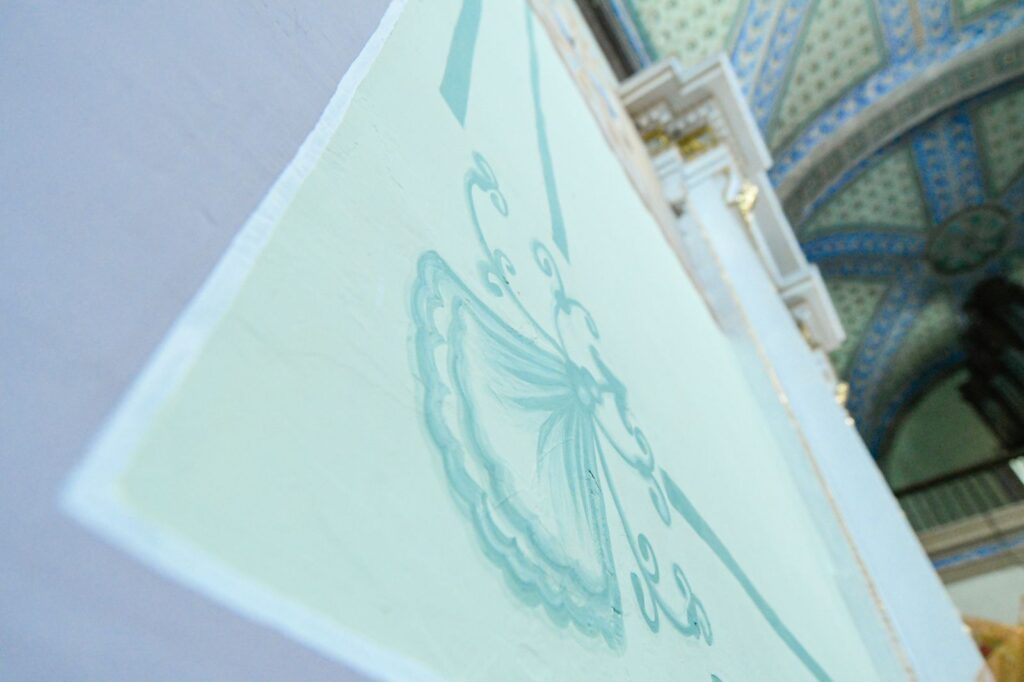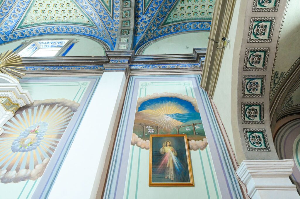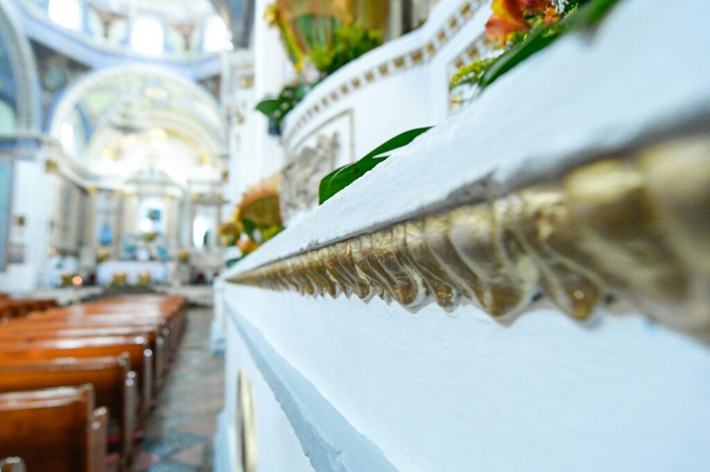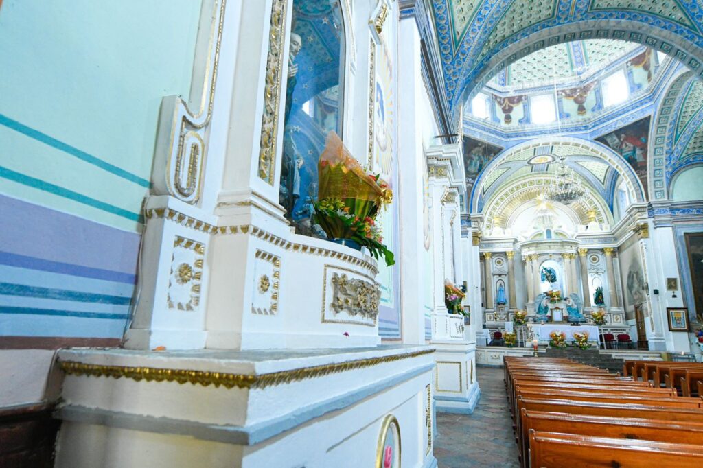 Además, de igual forma, se intervinieron 14 muros recuperando el diseño inicial del siglo XX del templo y de estos mismos se restituyeron 10 pinturas murales de manera idéntica y se intervinieron cuatro bases de los nichos, sustituyendo las molduras de yeso deterioradas, pintándolas en acabado blanco y decorándolas con polvo de oro, obra que tuvo una inversión de 323 mil 155.42 pesos.