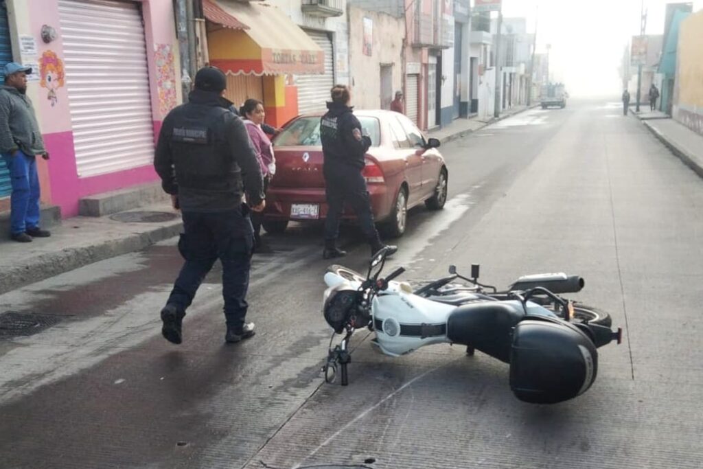 Fue sobre la calle Allende sur, esquina con Matamoros que un vehículo Renault color rojo, impactó a una motocicleta donde iban a bordo dos personas quienes fueron atendidas por paramédicos de la Coordinación de Protección Civil de Huamantla. Al no tener lesiones que requirieron de mayor atención no fue necesario trasladarlos a algún nosocomio.